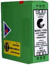 The T-IV transducer converts four 0 to 20mA input currents into four 0 to 10V output signals across a 500Ω resistance.